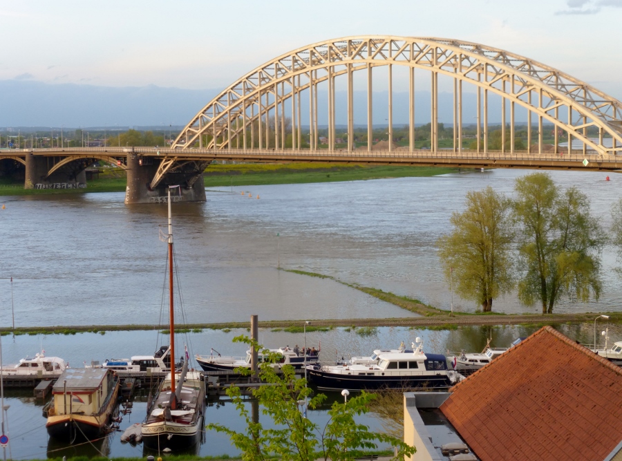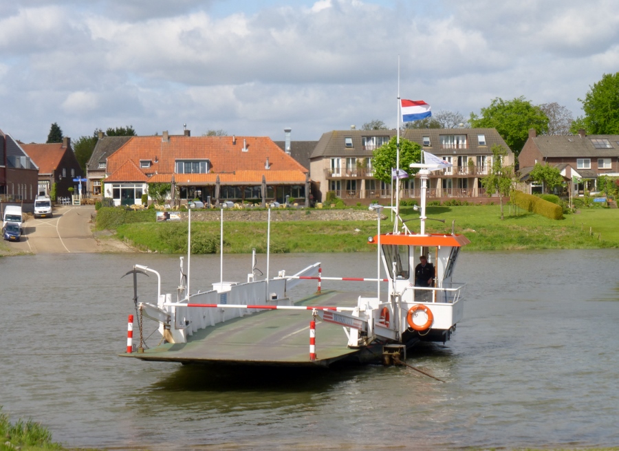 Vandaag is het pontjesdag, van Arcen naar Broekhuizen is de eerste. Er volgen er nog drie. Bij café Tante Jet, direct bij de aanlegplaats van een veer, komen we kennissen uit Leiderdorp tegen. We drinken met ons vieren een kop koffie.