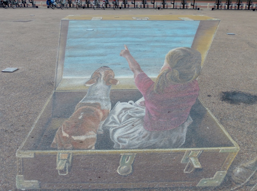 Vlak bij Museum Valkhof ligt ons hotel. Als we gedoucht en andere kleding aanhebben kunnen we nog even de stad in. Het is inmiddels bijna droog.