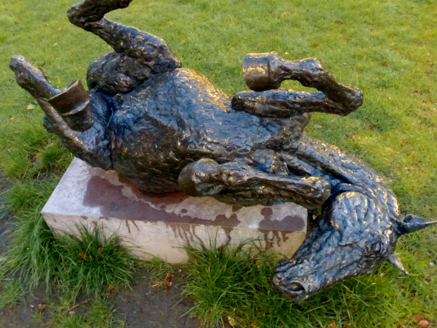 Aan de noordkant van de grote rivier gaan we verder langs het Pannerdensch Kanaal. Bij een onderdoorgang van de Betuwelijn staat een beeld van een mammoet. Bert kent dit beeld wel. Onderweg naar Arnhem maken we een praatje met een Engelsman, die een rondje door ons land fietst. Hij startte in Hoek van Holland.