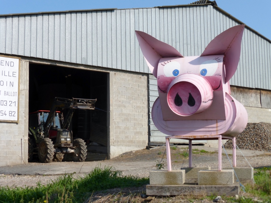 Om rond half negen zijn we in Tournehem. De deur van de ouderwetse dorpsherberg, de estaminet, wordt met een sleutel opengedraaid door een man die broden komt brengen. Dit is een brooddistributiepunt voor het dorp zonder winkels. Ik vraag de broodbrenger of de zaak al open is. Hij zegt: ‘De bazin komt eraan’. Dat is ook het geval. Ik help haar met het buitenzetten van de simpele plastic terrasstoelen. Dit moet omdat je anders je kont niet kunt keren is het krappe zaakje. Ze vertelt dat dit dorp een attractiepark heeft. Dat hadden wij overigens al gezien toen we er langs reden. Het ziet er in dat openluchtmuseum allemaal wat gedateerd uit. Als de vrouw van de herberg ziet dat op de kaft van ons routeboekje een uithangbord staat afgedrukt, zo een als zij er ook heeft hangen aan de muur van de etablissement, wil ze het boekje graag even inzien. Ze maakt een fotokopie van het kaartje waar de hele route op staat.