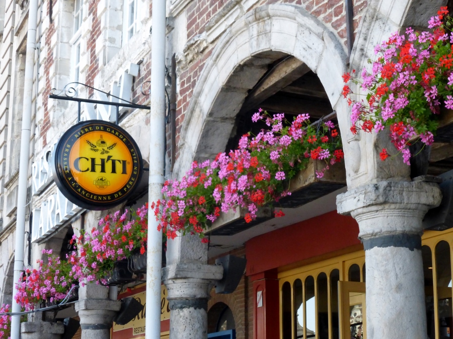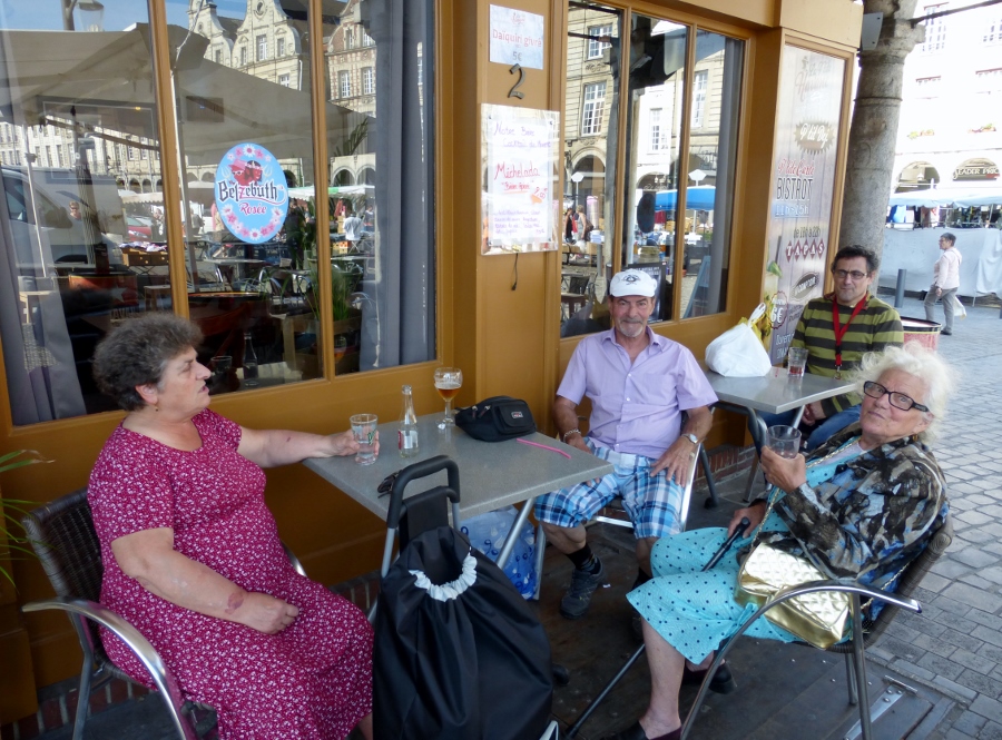 Omdat onze camping niet aan de route ligt improviseren we een weg naar de route toe. Omdat ik een Garmin navigatieapparaat met ingeladen traject heb is dat niet echt moeilijk. Voor we bij Arras, een behoorlijk grote stad, aankomen, gaan we voor een bakkie koffie in een dorp onderweg. De uitbaatster van het café heeft een hond, zoals Frits vroeger had, geen doetje. Bert wil daar even plassen en moet daarvoor over een betegeld terrein naar een wc naast een garage. De hond gaat achter hem aan. Hij heeft het overleefd, maar vond de aanwezigheid van die hond geen prettig idee.