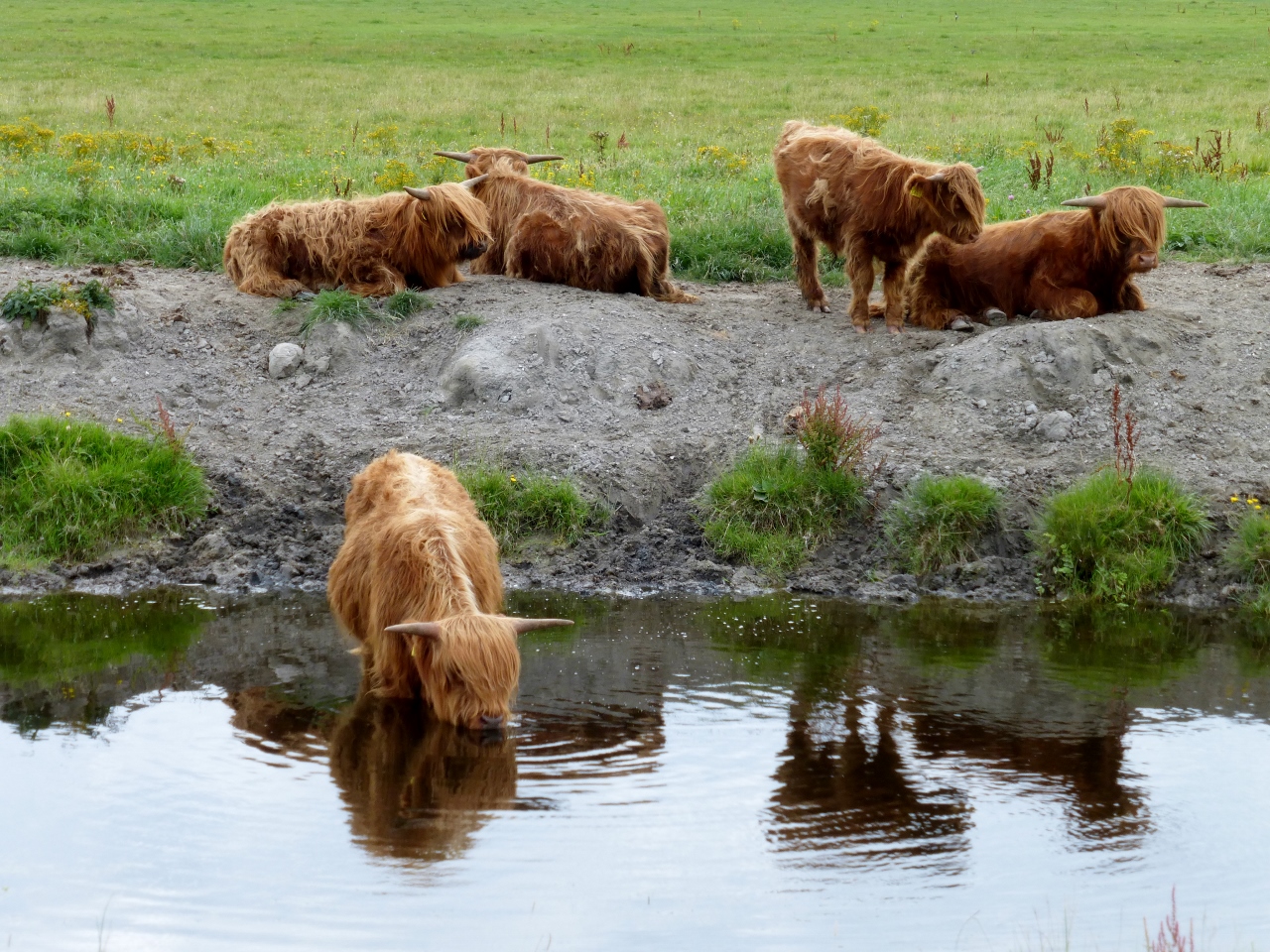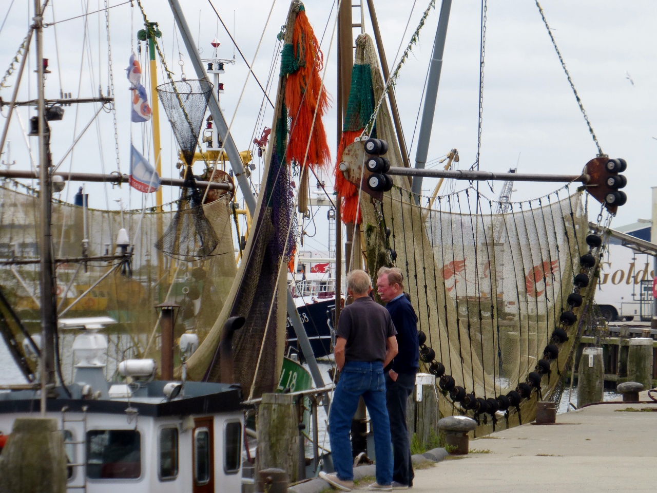 Het natuurgebied Lauwersmeer ligt op de grens van de provincies Groningen en Friesland. Het Gronings deel, Marnewaard, is een erg rustig gebied. Hier woont geen mens. Alleen is er een militair complex en een stukje van de weg af een café-restaurant. Dit horecagebeuren heeft vandaag nog geen enkele klant gezien, als wij hier vragen of we een koffie kunnen bestellen. De baas klaagt dat zijn restaurant moeilijk is te zien vanaf de doorgaande weg. Er is inmiddels vorige week een nieuwe betonnen voet gemaakt voor een vlaggenmast.