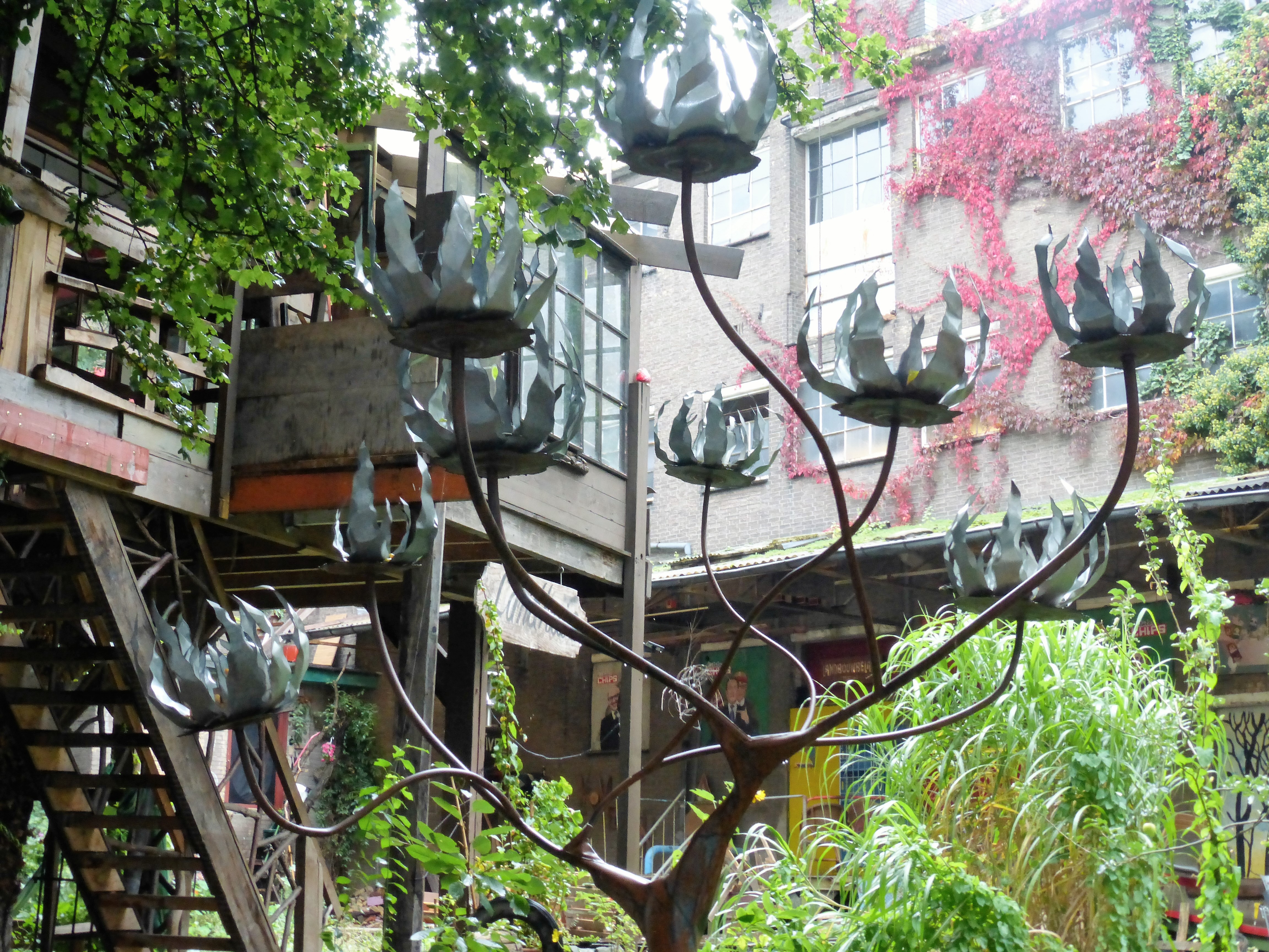 We komen door het natuurgebied Hochter Bampd. Het ligt ingeklemd tussen de Maas en de Zuid-Willemsvaart. Volgens de borden zouden hier galloway runderen en prezwalski paarden lopen. Wij komen ze niet tegen. Of ze hebben zich verstopt of ze inmiddels naar de slager gebracht. We komen door een tuinbouwgebied. Frambozenplanten staan in potten onder een gigantisch afdak van plastic.