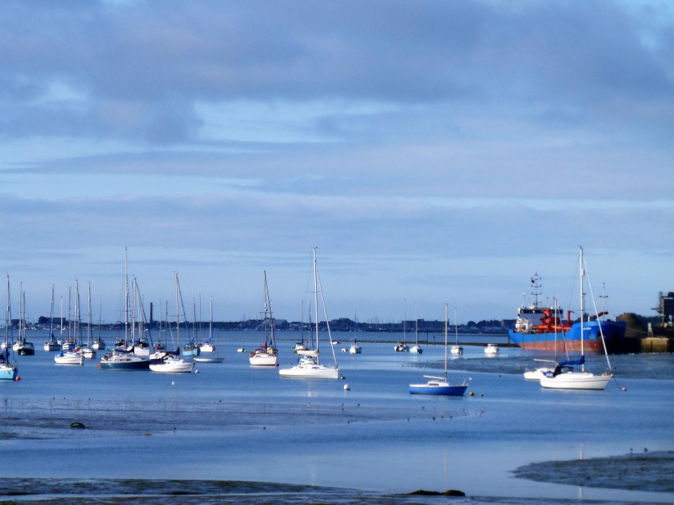 Eenmaal weer goed op de route volgen we de fietsbordjes met nummer 22 tot Havant. We hebben meer dan een uur uitzicht op Langstone Harbour. We komen op deze mooie zondagmorgen heel wat Engelse wielrenners en gewone fietsers tegen.