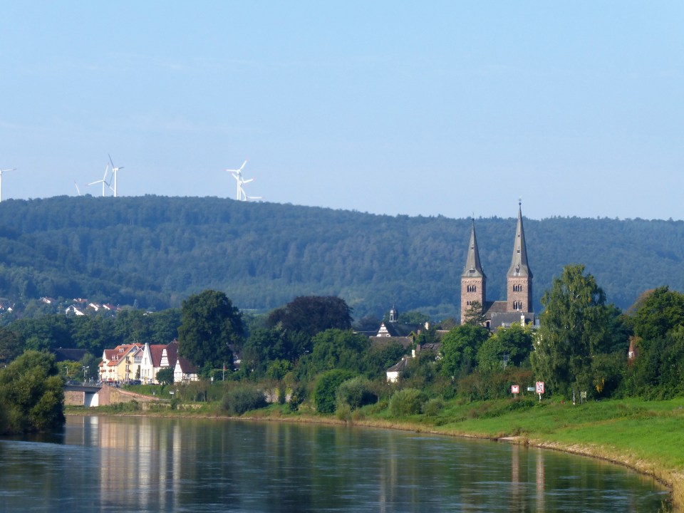 In Höxter ben ik zo’n uur onderweg. De zon kom door. Omdat er vandaag alleen maar dorpen op mijn route liggen, ga ik in deze stad uitgebreid een bakkie koffie drinken op een terras in de zon.