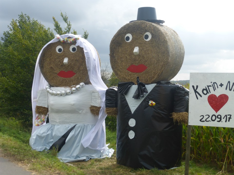 Hier in Duitsland zie je veel kapelletjes, kruisbeelden en Mariabeelden. Het is of was hier waarschijnlijk een nogal katholiek gebied.