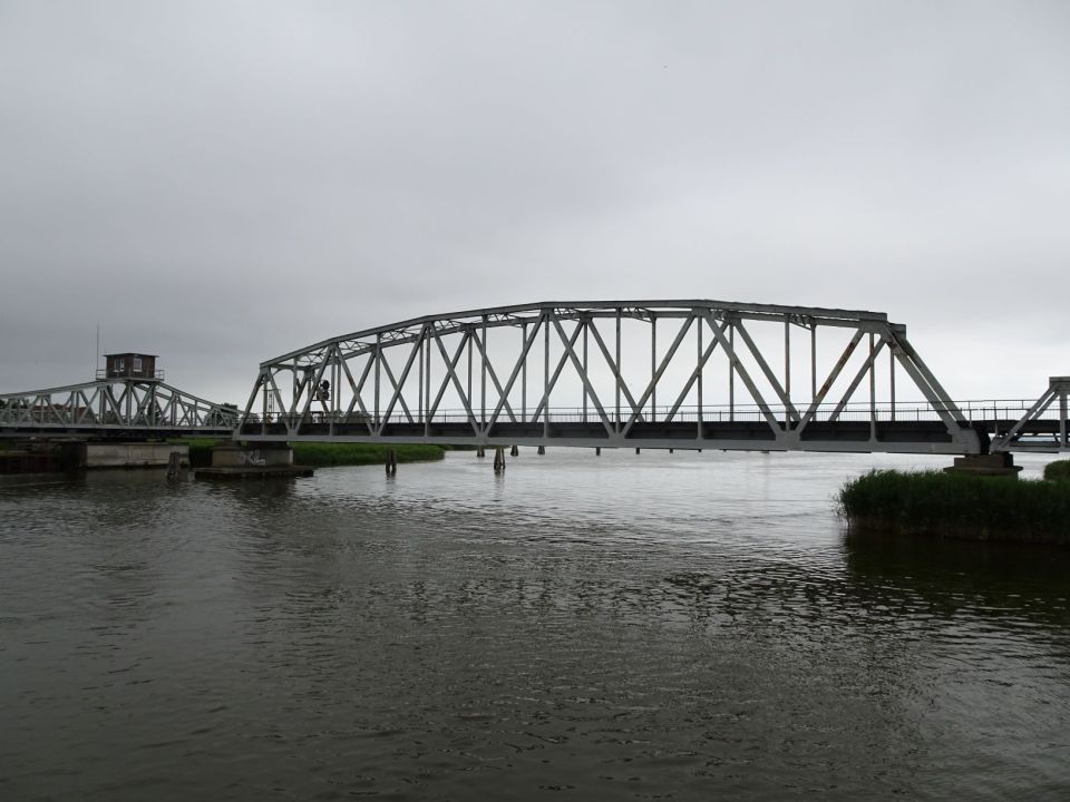 In Prerow zijn we op Darß, een ander (schier)eiland in de Oostzee. Het is hier erg toeristisch. We drinken een kop koffie bij een bakkertje naast de Edeka-supermarkt. De Edeka is tot 12 uur nog dicht. Er hangt vocht in de lucht. Ik heb mijn regenjas en rainlegs aangetrokken. We fietsen een flink stuk over een fietspad door het bos. Onder een schuilafdak eten we onze boterhammetjes. We hebben hier wel last van muggen en steekvliegen.