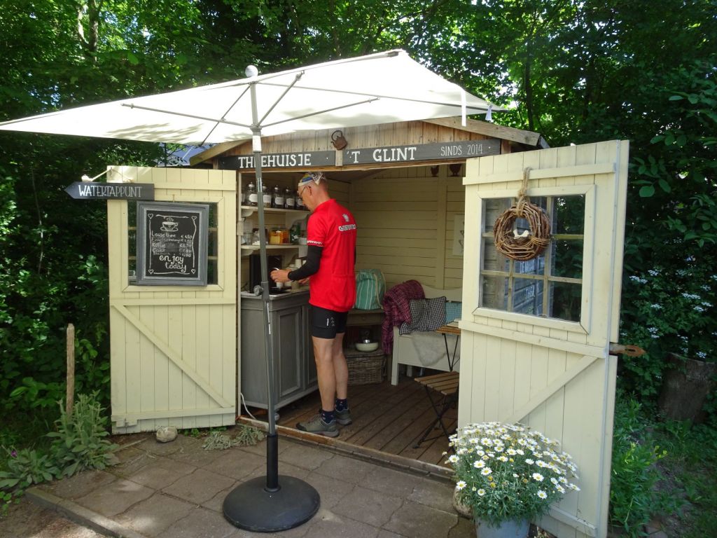 Bij een rustpunt worden we aangesproken door de eigenaar. Zijn vrouw en hij hebben hun baan in het bedrijfsleven opgegeven en runnen sinds kort een zorgboerderij. Hun deelnemers zijn vooral mensen die zijn vastgelopen in hun werkzame leven. Mensen met een burn-out bijvoorbeeld. De verwijzing en financiering vindt meestal plaats door de gemeente. De vrouw zet een karaf water met citroen op de tuintafel.