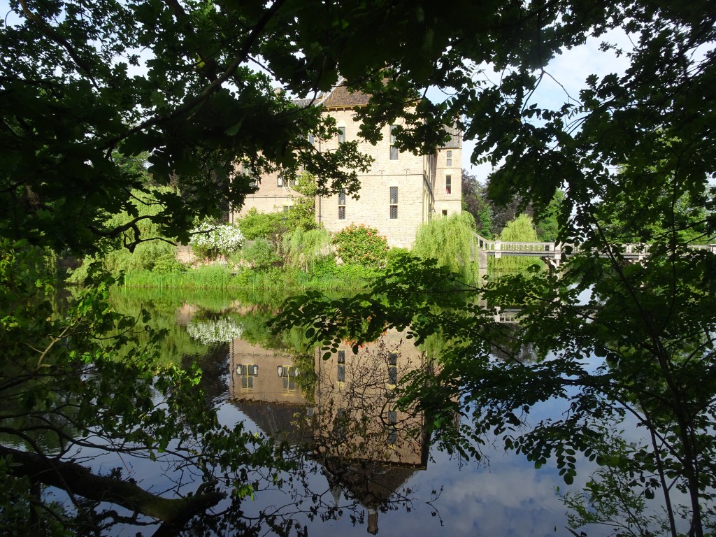 Bij Kasteel Hillenraedt in Swalmen maken we een praatje met een stel uit Hoofddorp. Zij lopen een aantal etappes van het Pieterpad voor wandelaars. Ze vertellen dat het erg moeilijk is om slaapplaatsen te vinden bij Vrienden-op-de-fiets, B&B’s en hotelletjes.