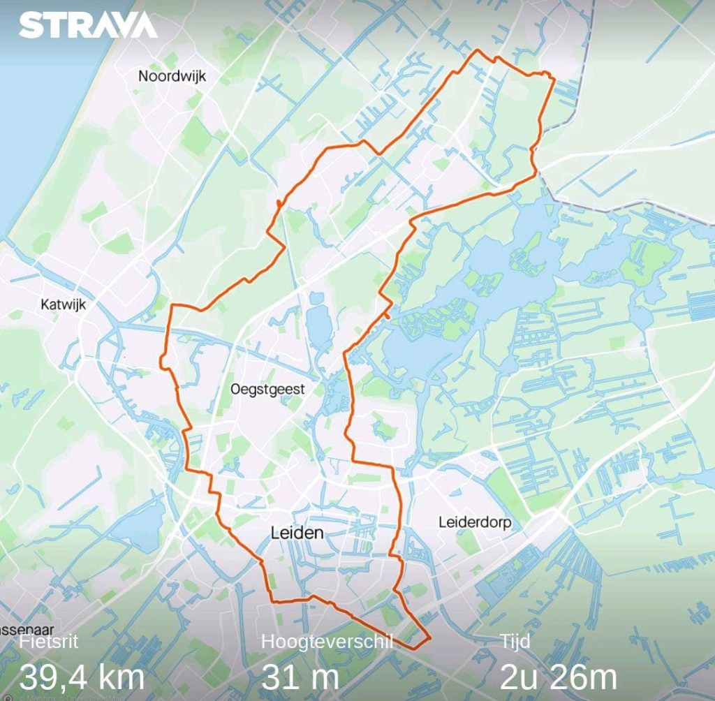 Rondje fietsen: Voorhout, Rijnsburg, Oegstgeest, Zoeterwoude Rijndijk, Leiden, Utrechtse Jaagpad, Warmond, Lisse.