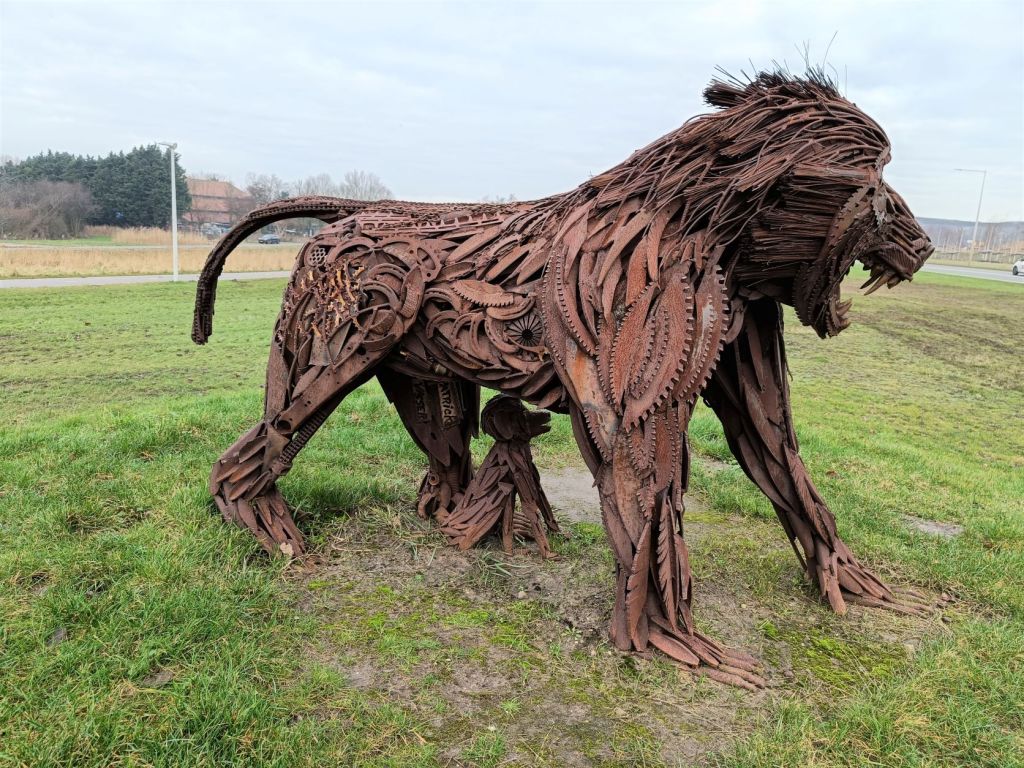 Voorbij Spaarnwoude zien we enorme bergen steenkool liggen in het Westelijk Havengebied. Voor elektriciteitscentrales? In de middle of nowhere staat een mooi beeld van de metaalkunstenaar Patrick Visser. Een baviaan met kind. Eerder zagen we werken van deze autodidactische kunstenaar in Zoeterwoude. De baviaan staat hier wel op een heel afgelegen plek.