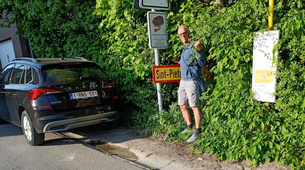 We rijden weer op het platteland. Op de grens van twee gemeentes, Halle en Sint Pieters Leeuw, staat een klein hotel. Hier hebben ze een kamer voor ons. We waren getipt door mannen op een plattelandsterrasje van de ‘Oude Smidse’.