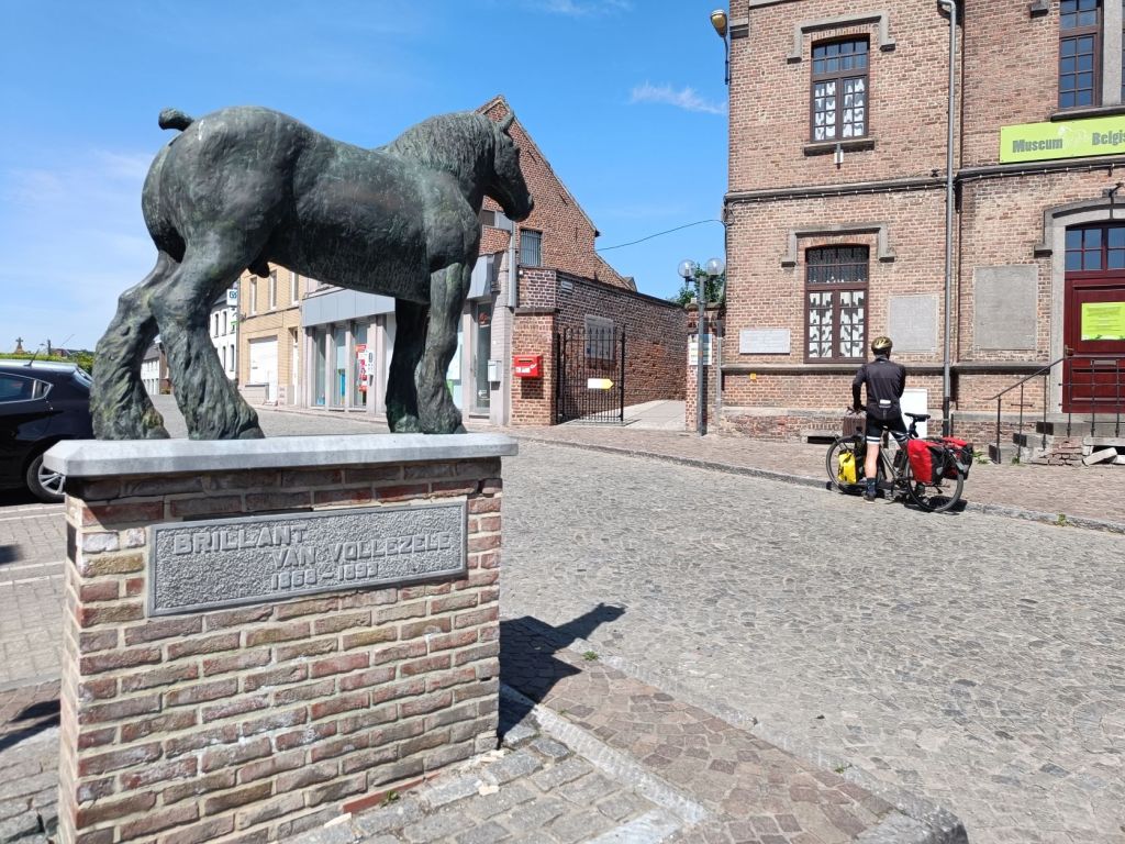 Vandaag worden we weer getrakteerd op kasseienstroken. Het is aardig warm. Zondag is het vandaag. Groepen Belgische wielrenners zijn onderweg. In een dorp staan afzetborden klaar langs de weg. Over een half uur begint hier een wielerwedstrijd. Ook zien we in deze omgeving veel antieke snelle auto’s. Een stukje over de stoep rijdend kunnen we toch ongehinderd onze weg vervolgen. Het is vandaag regelmatig een stuk naar beneden gevolgd door een stuk omhoog. We zijn in de Vlaamse Ardennen.