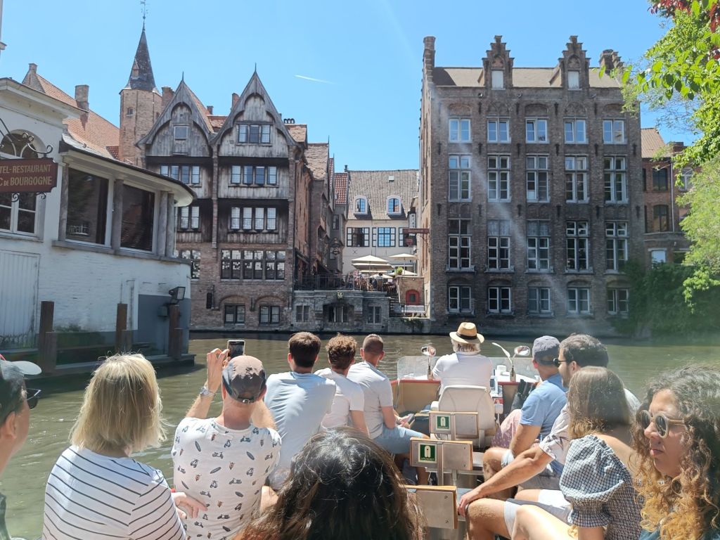 Het is schitterend weer vandaag. Nu staat o.a. het bezoek aan een brouwerij en een rondvaart over de rijen van Brugge op het programma.