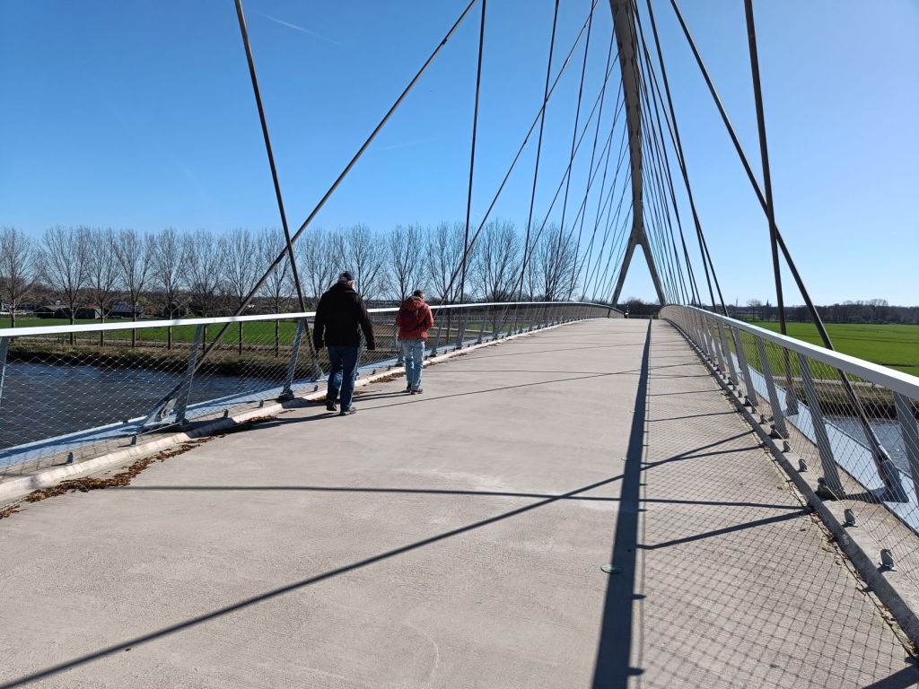 Maandag 3 april 2023 De trein van Amsterdam naar Utrecht gaat bij het vroegere station van Abcoude via een korte tunnel onder de Gein door. Het niet meer als station in gebruik zijnde gebouw is nu Hotel De Witte Dame. Aan de andere kant van de betonnen bak voor de treinen wandelen we nu langs de Gein. Onze route gaat hier over een smalle kronkel-asfaltweg met weinig verkeer. Fort Nigtevecht is alleen op zaterdag en zondag geopend voor een bezoek aan het herinneringscentrum en/of een kopje koffie. We lopen een stukje verder langs het Amsterdam- Rijnkanaal. Dan komen we bij de flink hoge voet- en fietsersbrug. Die is hier vanaf 2018. Aan de zuidkant gaan we over de hellingbaan voor fietsers omhoog en aan de andere kant via een trap voor voetgangers naar beneden.