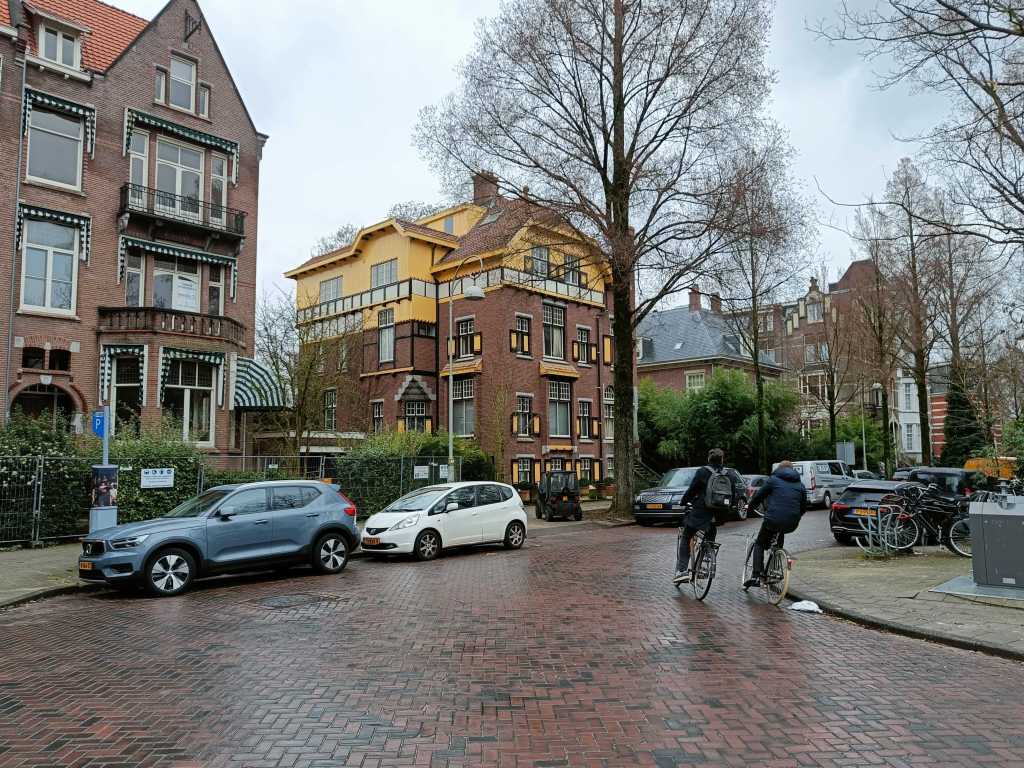 De Surinamestraat is een van de deftige Haagse straten. Ik zie vandaag veel ambassades. Meestal voorzien van veel camera’s. Soms staat er ook een mobiele politiepost. Nog een deftige straat, Prinsenvinkenpark met een enorme boom op een minirotonde.