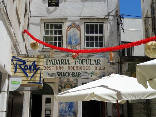 Vandaag maken we in Lissabon eerst een ritje met tram 28. We gaan door smalle straatjes. Als je een hand uit de openstaande houten raampjes steekt kan je de muren van de pandjes langs de straat aanraken. Soms moet de tram wachten voor verkeerd geparkeerde auto’s. Er wordt dan flink op de trambel geslagen.