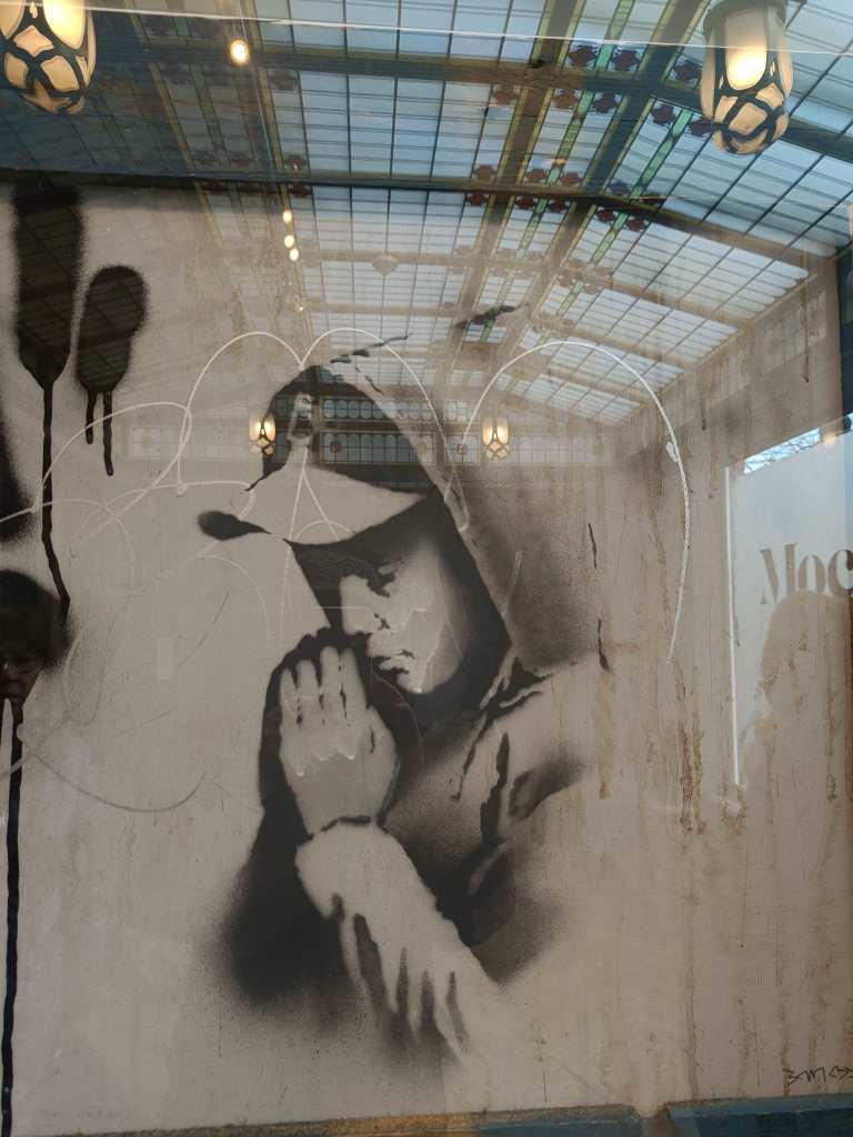 De trein van acht over negen rijdt vandaag niet. De volgende trein van Leiden naar Utrecht gaat om 9.23 uur volgens het informatiebord op spoor 1. In de routeplanner / de app van NS wordt deze trein niet weergegeven. Even na tienen kom ik aan in Utrecht. Leo W zit al aan de koffie. We verlaten het station aan de centrumkant. Een man of acht duwt een grote zware kist van niet-courante afmeting op een betrekkelijke steile hellingbaan omhoog. Dat is nog eens buffelen. Beneden staat een vrachtauto met nog meer materiaal, dat waarschijnlijk ook nog omhoog moet.