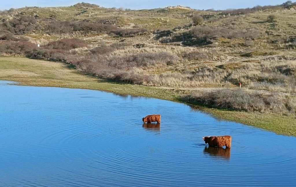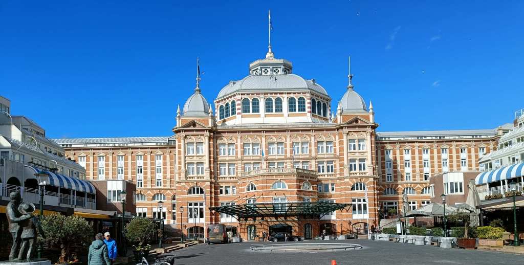We komen langs voormalige vliegbasis Valkenburg, waar al jarenlang ‘Soldaat van Oranje’ wordt opgevoerd. Bij café De Klip aan een rotonde fietsen we heuvelop naar de Wassenaarseslag om uit te komen bij een Flecherhotel. Nu nemen we het fietspad naar Scheveningen. Het beeld van Wim Kan en zijn vrouw staat nog steeds op het plein van het Kurhaus. Er wordt op grote schaal geasfalteerd bij Kijkduin. Alle verkeer wordt omgeleid, ook fietsers. Langs de brede laan richting het grote restaurant in Landgoed Ockenburg staan krokussen in bloei.