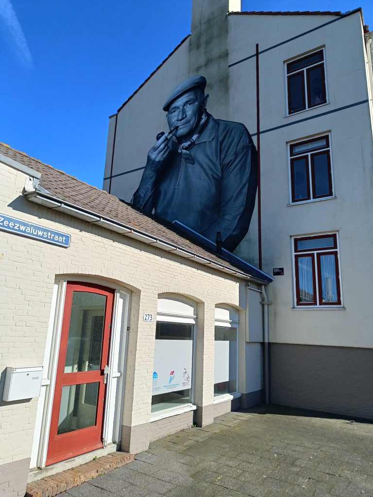 Tussen Katwijk en Valkenburg (ZH) drinken we onze eerst bakkie koffie van vandaag op een mooie bank aan een wandelpad tussen riante nieuwe woningen. We maken een praatje met een man die daar woont. Hij moest wel eerst de airpods uit zijn oren halen.
