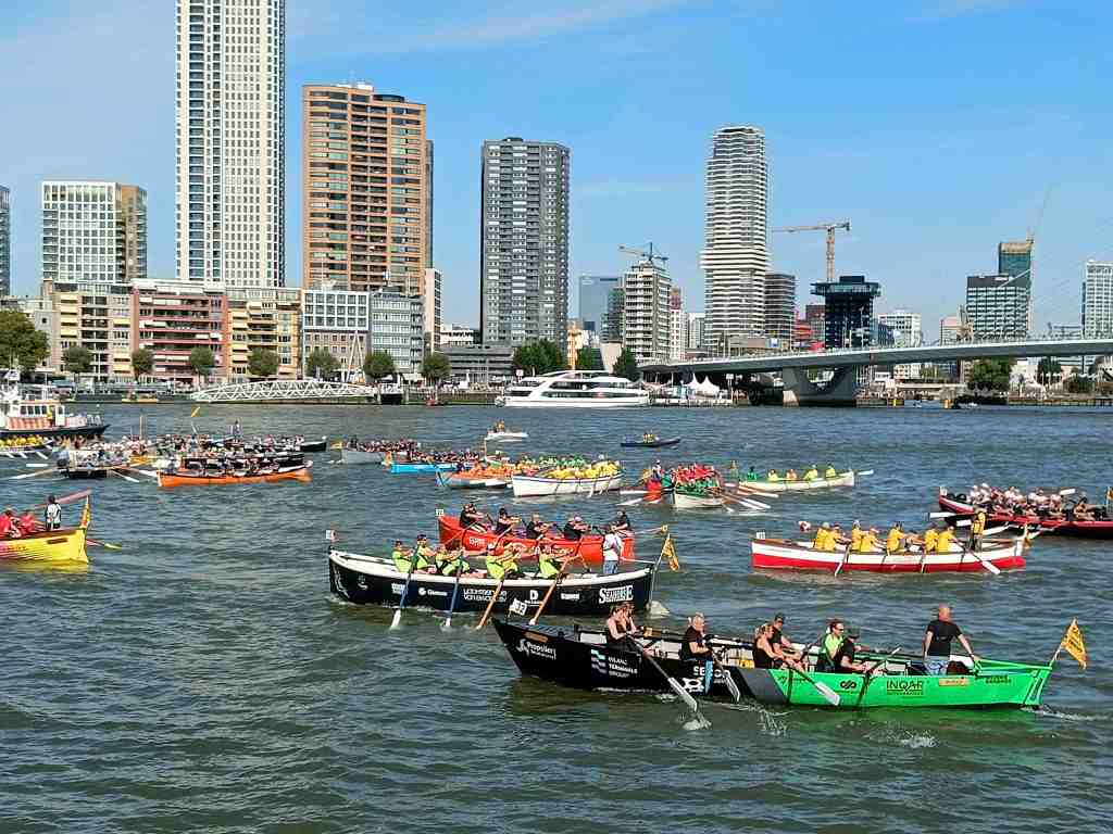 zaterdag 23 augustus 2025. Boten kijken vanaf een sloep.