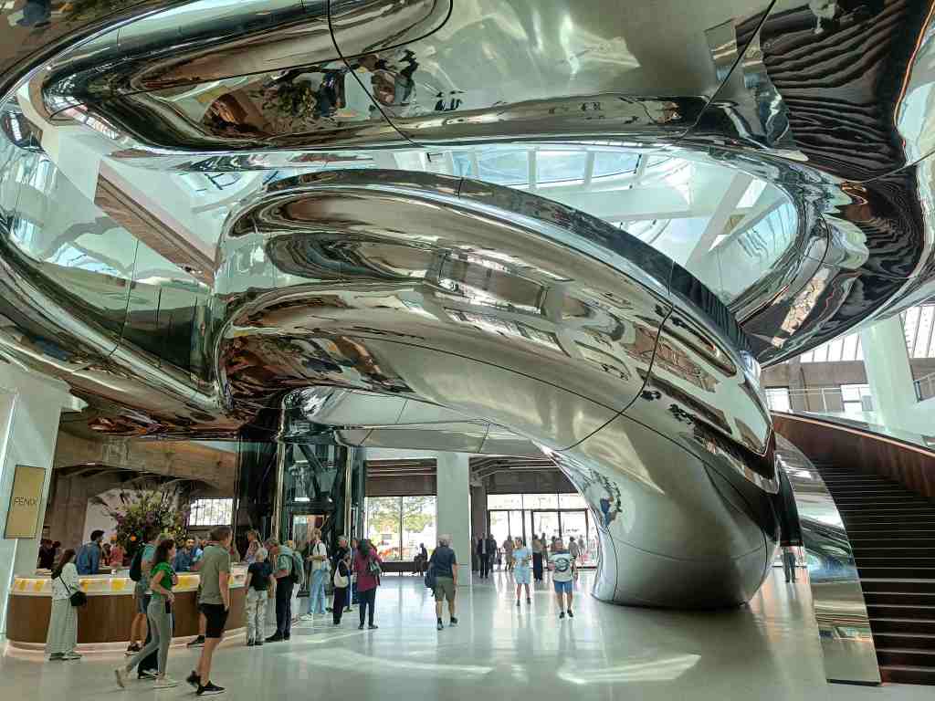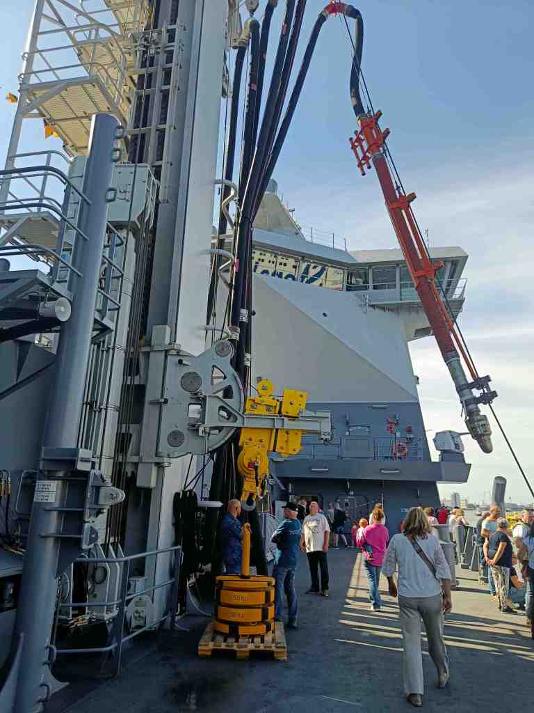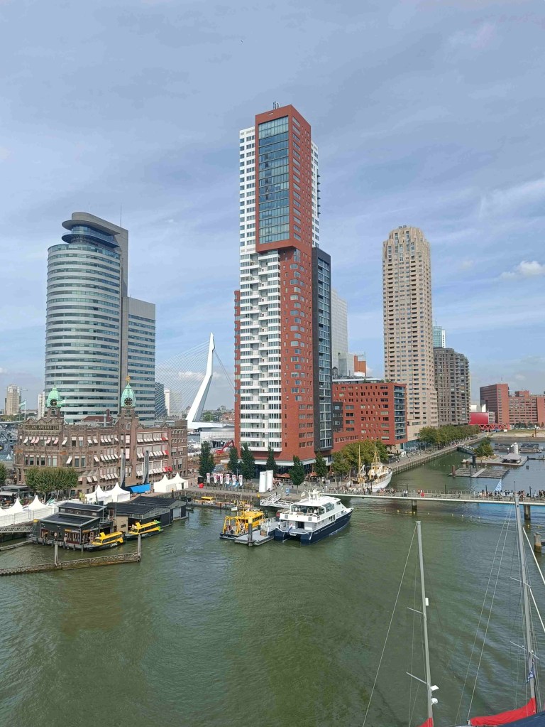 Het museum Fenix werd in mei 2025 officieel geopend door Koningin Máxima. Het thema is migratie. Het is tot stand gekomen met geld van de familie Van der Vorm. Deze familie heeft haar vermogen vergaard met de Holland-Amerikalijn. Het museum is mooi en bijzonder. Je kunt via trappen naar het uitzichtniveau. Als je buiten het museum staat lijkt de ‘tornado’ een ronde glijbaan van een zwembad, maar dan een paar maatjes groter. Vandaag heb je een fraai uitzicht op de activiteiten van de Wereldhavendagen. Wij gaan naar boven via de lift en lopen de trappen af terug naar naar beneden.