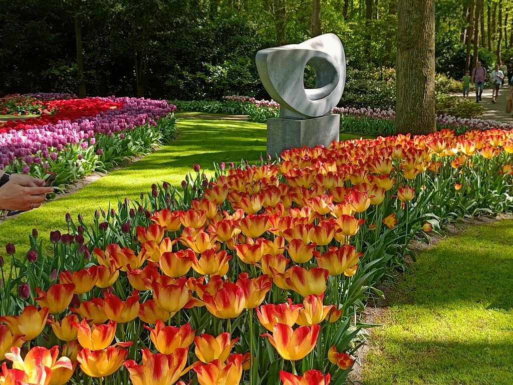 De Kennemerduinen tussen IJmuiden en Bloemendaal aan Zee zijn de moeite waard. Toch weer anders dan de Amsterdamse Waterleidingsduinen en de duinen bij Noordwijk. We volgen nu de kustlijn van Bloemendaal en Zandvoort. De wind komt uit het Noordwesten. De jassen kunnen wenog goed hebben. In de Zandvoortse Kerkstraat gaan we aan de thee in een café-restaurant. Daarna fietsen we naar de Langevelderslag. De Keukenhof is voor 2025 weer voorbij. Op de Van Lyndenweg is het daarom rustig.