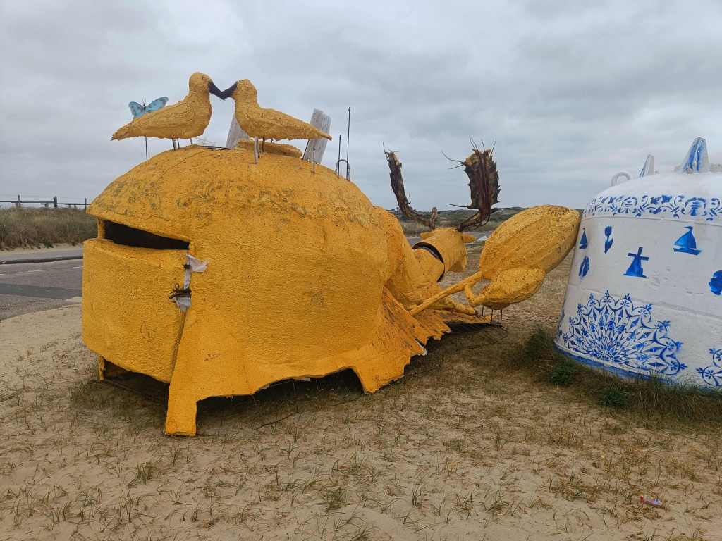 Van andere gasten op het terras horen we dat er normaal gesproken een waterbus vaart van het Sluisplein naar de overkant van het kanaal, en visa versa. Maar vandaag vaart hij niet. Nu wordt duidelijk waarom de GPX-track ons naar het Sluisplein voerde. We hadden daar moeten met de waterbus overvaren naar de noordkant van het Noordzeekanaal. In Wijk aan Zee fietsen we een stukje terug naar de Sparwinkel. Hier ben je zo in de Kennemerduinen.
