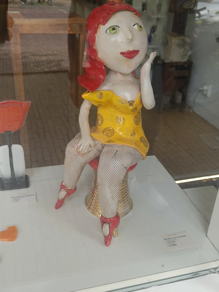 Bij de Engelkerk neem ik een pauze. Er staat in de kerktuin een brede bank met daarvoor een oud kastje dat als tafel kan dienen. Er staat een bloempot op met bloemen. Er is pas nog water gegeven. De bloempot druipt nog. Nu ik hier toch ben neem ik een kijkje in de Mariakapel. Als ik binnenkom floept het licht aan. Bij het Mariabeeld kan je voor één euro een kaarsje opsteken. Het ziet er niet uit dat er vandaag veel gebruik van is gemaakt.