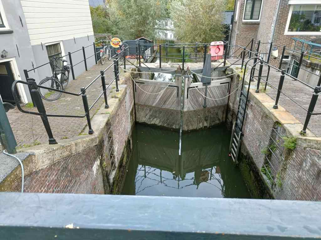 Links van ons is een hoge dijk met een ijzeren trap naar boven. Wij gaan boven een kijkje nemen. We hebben uitzicht op de treinbaan. Er gaat een breed graspad naar rechts. Op een bepaald moment wordt het pad smaller en baggerig. Een klein stukje of een groter stuk? We weten het niet. Wat is wijsheid, teruggaan of doorlopen? Het baggerpad wordt breder en 500 meter verder komen we in een villawijkje van Warmond. We passeren het Warmonder Hek en steken de Haarlemmertrekvaart over. Voorbij de brug houden we het smalle straatje langs de vaart aan. Hier liggen veel woonarken.
