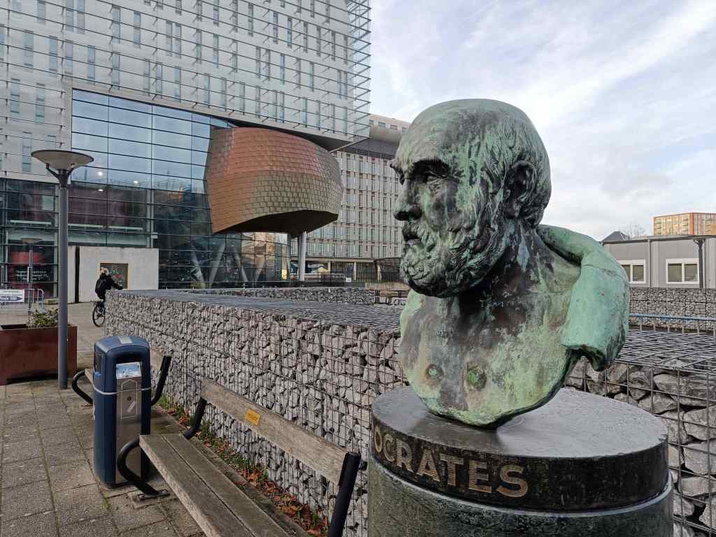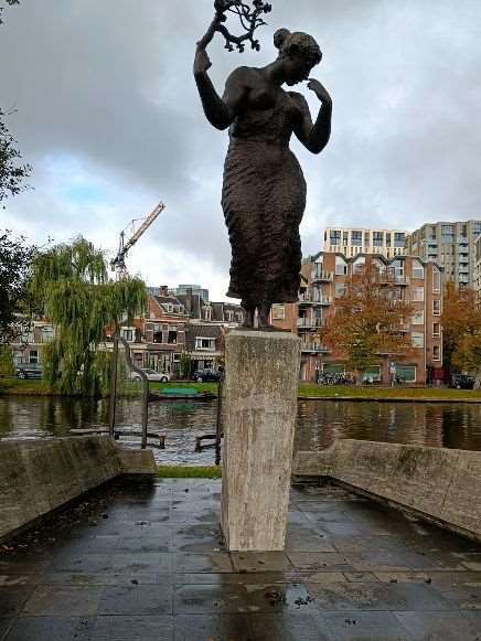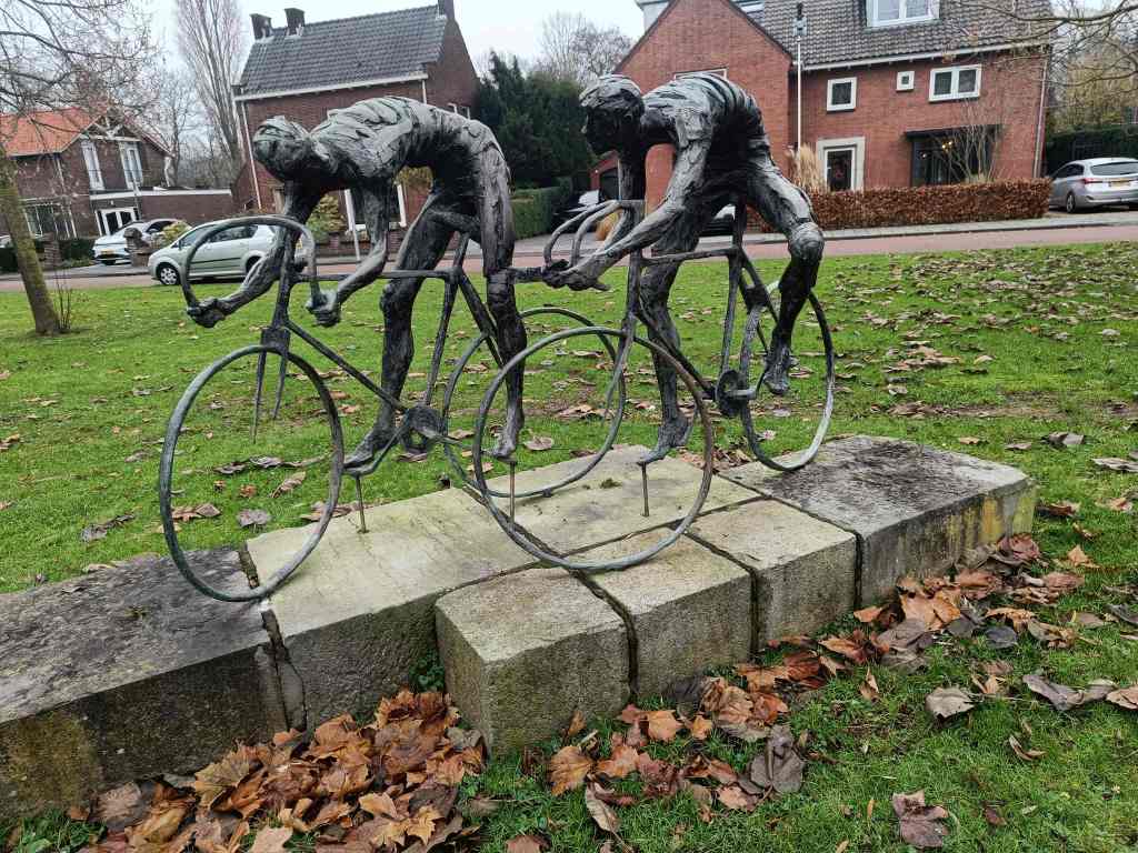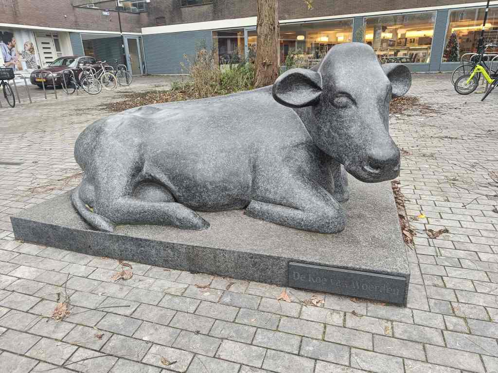 Met broer Leo maak ik hier een wandeling. We beginnen met een bak koffie bij grandcafé Plein 7 gelegen aan het Plein, hartje stad. Voor de bibliotheek ligt de Koe van Woerden een kunstwerk van de kunstenares Gaëtane Scholten. Het is gemaakt uit een stuk Indiaas graniet van 3 x 2 x 2 meter. Ook komen we langs het beeld De Wielrenners, van José Pirkner. Het is bedoeld als eerbetoon aan wielrenner Arie van Vliet.