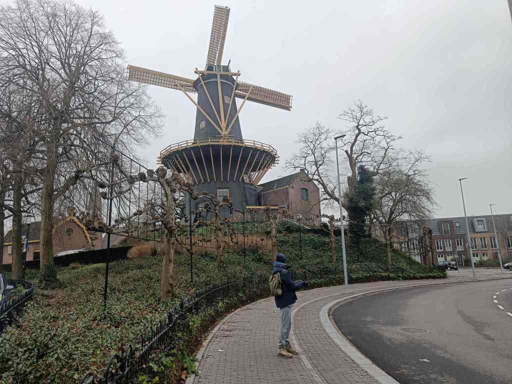Voorbij Molen De Valk komen we in de drukte van de stad. Genoeg horeca om hier een bakkie te drinken. Wij kiezen voor de Bruine Boon. In de buurt van Station Leiden Centraal gaan we onder het viaduct door naar de Rijnsburgerweg. We hebben nog tijd voor een ommetje door het Leidse Hout. Ergens in Oegstgeest pakken we de bus naar Sassenheim.