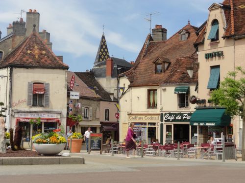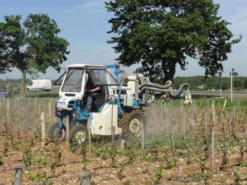 In Nuits-St. Georges pik ik om 15.00 uur een terrasje aan het begin van de Grand’ Rue. Nu eens geen koffie of thee, maar cola. Het is er weer voor. Dit stadje is de naamgever van de wijnstreek tussen Beaune en Dijon, de Côtes de Nuits. Het valt me vandaag op dat heel veel wijnboeren de druivenplanten spuiten. Waarschijnlijk is een droge zonnige dag daar goed voor. De afgelopen dagen werden er geen gewasbeschermingsmiddelen (bestrijdingsmiddelen) gespoten.