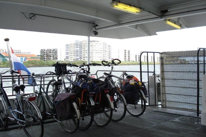 Even naar het oosten via Brielle en Rozenburg. Daar steken we met het Connexxionpont over naar Maassluis. Door het open land langs gezellige kanaaltjes zijn we rond het middaguur bij Delft. Daar praten we met een stel uit Drenthe dat een fietstocht van drie weken maakt door een stukje Duitsland, Limburg, België en west Nederland. Zij overnachtten in Brielle op de camping, nadat ze, net als wij, tevergeefs geprobeerd hadden een slaapplaats te vinden bij een Vrienden van de Fiets-adres.