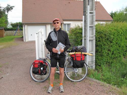 Eenmaal terug bij de B&B praat ik nog even met de eigenaar in zijn tuin. Ik vertel hem dat het morgen nationale feestdag in Frankrijk is. Dat was hij even vergeten. Hij zegt dat de bakker in het dorp op zo’n dag ’s morgens wel een paar uur open is. Verder moet ik maar zien. Er is geen pijl op te trekken. Van Joke hoorde ik aan de telefoon dat de komende dagen veel regen wordt voorspeld in deze regionen van Frankrijk. Ik zie wel. Ik kan dan mooi de waterdichte Duitse fietstassen, het nieuwe fietsjack en de ‘rain legs’ testen. Om eerlijk te zijn heb ik liever droog weer.