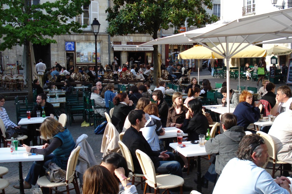 Op het terras in de wijk St. Martin, waar de zon nog schijnt pak ik een paar biertjes en een pizza. Een Frans setje vraagt mij hen op de foto te zetten. Nadat ik dat gedaan heb, vraag ik direct ook maar of ze zo goed willen zijn mij op dit terras vast te leggen op de plaat. Tours lijkt op Maastricht, maar dan niet met twee bekende pleinen maar tientallen.