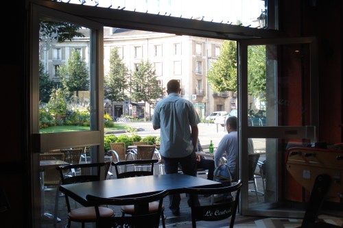 Vlakbij dit hotel is een McDonald’s. Carlos, een jongeman uit Barcelona, is met zijn fiets onderweg richting Noord-Frankrijk, Belgë, Nederland en Berlijn. Hij besteedt gemiddeld euro 5 á 6 per dag. Daarom kampeert hij meestal wild. Bij de McDonald’s houdt hij zijn blog bij. Hij koopt dan een koffie met melk om zijn kosten laag te houden.