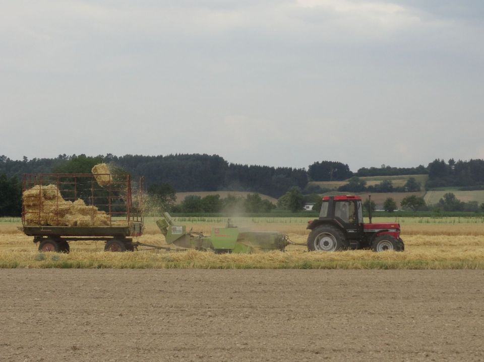 Het is vandaag weer mooi weer. De eerste paar uur is het nog wat heuvelachtig maar dat wordt snel minder. We rijden vooral langs landbouwakkers en zo nu en dan door bossen. Er wordt hier vooral maïs en tarwe verbouwd. Hoe ze hier omgaan met wisselteelt is mij een vraag. Je ziet hier naast maïs en tarwe ook nog andere graansoorten zoals haver en gerst, maar bijvoorbeeld bijna geen aardappels en geen bieten. De eerste tarwe is hier al geoogst. Ik neem aan dat dit wintertarwe is.