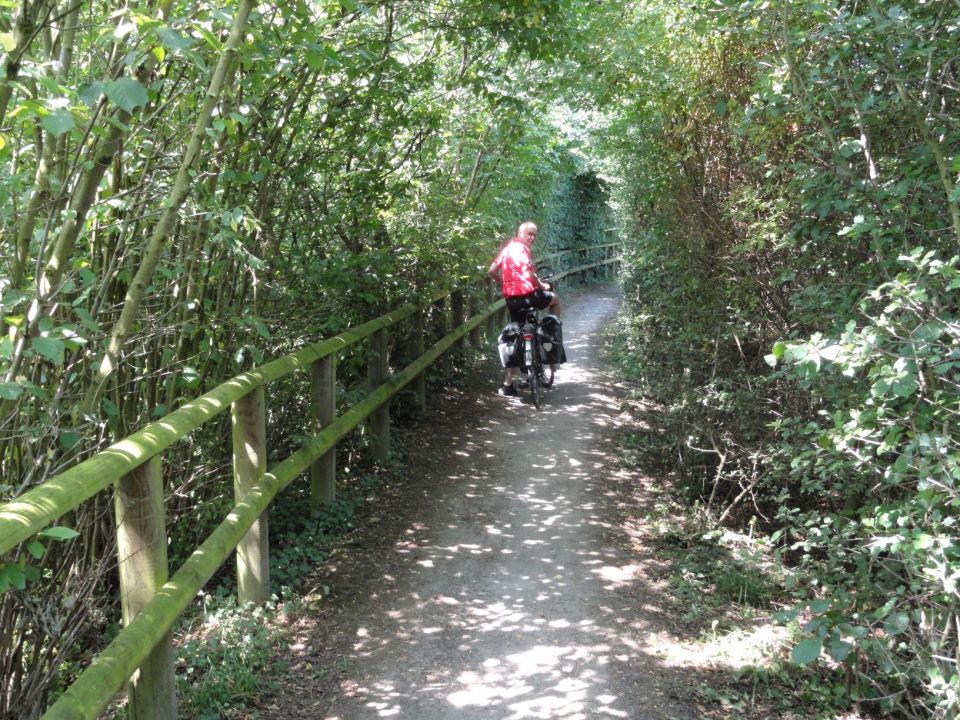 Vandaag is het net als gisteren behoorlijk heuvelachtig. Het is nog wat pittiger zelfs Als we in voormalig West-Duitsland zijn aangekomen, valt ons op dat er grind op de bospaden ligt. In de voormalige DDR is dit, voor zover wij zagen, altijd steenslag.