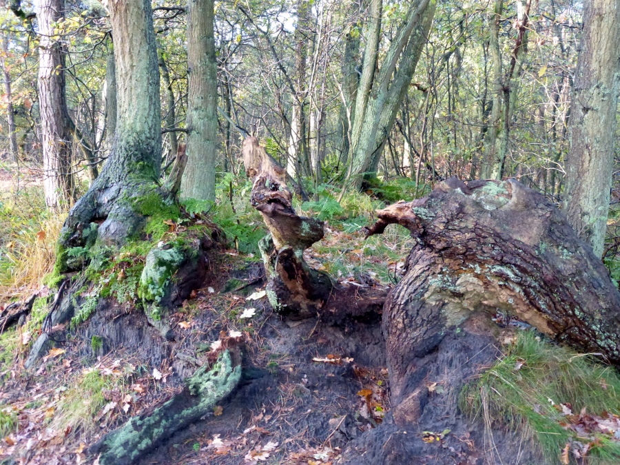 Onze gids heeft tien deelnemers onder zijn hoede. Hij vertelt ons veel over het natuurgebied, het ontstaan van de duinen, de eikenbomen die voor een groot deel onder het zand zijn verdwenen en over plantjes en paddenstoelen.