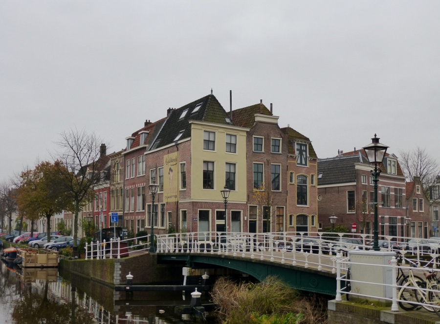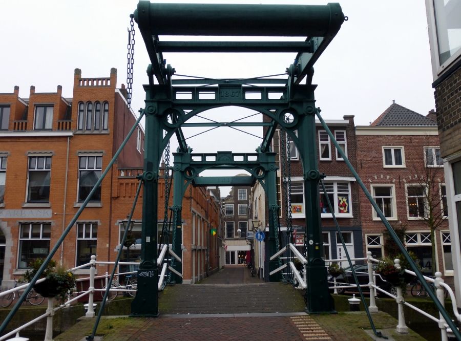Brug bij het begin van de Hooglandse Kerkgracht. Aan de overkant van de brug ligt de Hooglandse Kerkstraat, die uitkomt op de Haarlemmerstraat, een van de bekendste winkelstraten van Leiden.