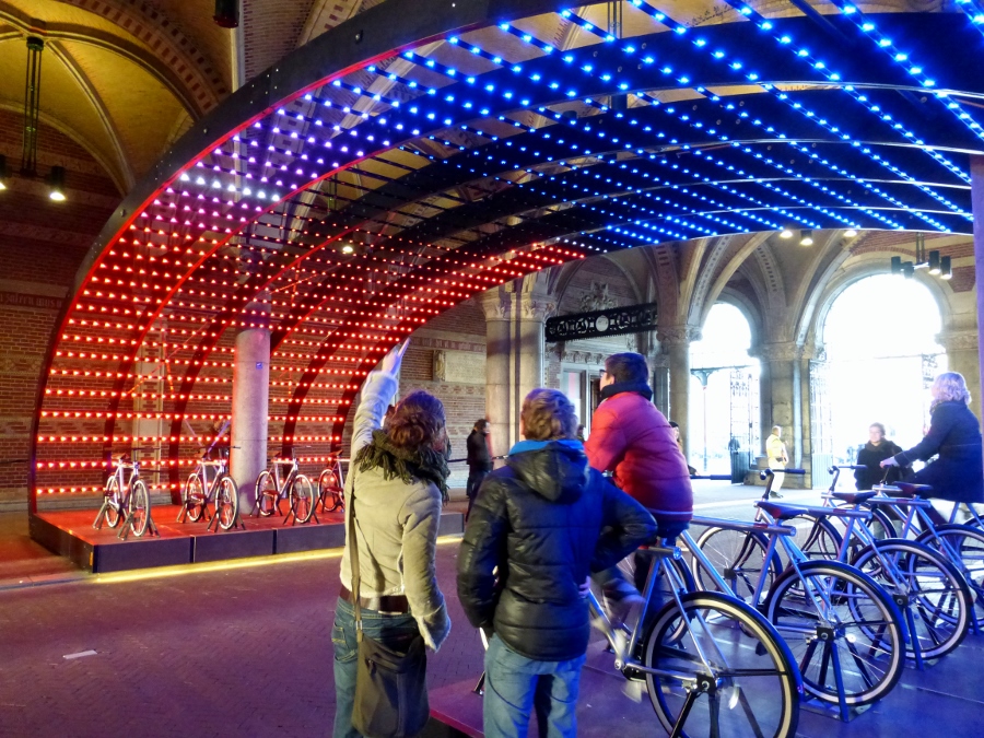 Het is wat heiig, maar heerlijk fietsweer. In de stad is het nog rustig.