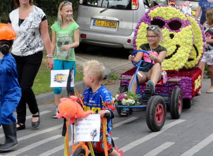 Rond Winterswijk liggen verschillende buurtschappen. Eén van die buurtschappen is Zwolle. Dit dorp lig niet ver van Groenlo af. Het minidorp is korte tijd afgesloten omdat vandaag het kindercorso van het buurtschap door de dorpsstraat loopt. Voorop loopt het plaatselijke muziekkorps, daarachter volgen de kinderen met fietsjes en karretjes die zijn versierd met dahliabloemen. Volgend weekend is er in Winterswijk een echt bloemencorso tijdens de Volksfeesten. Dat moeten we missen. Onze fietstocht in de Achterhoek en omgeving duurt maar vijf dagen.