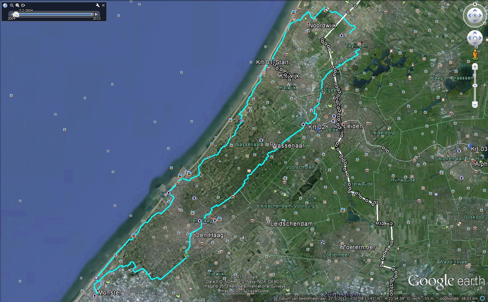 We maken een fietstrip vanuit Sassenheim door de duinen via Katwijk, Scheveningen en Kijkduin naar Monster. Vandaar gaan we via knooppunten naar het centrum van Den Haag. Door Wassenaar en Leiden keren we terug naar de Bollenstreek.