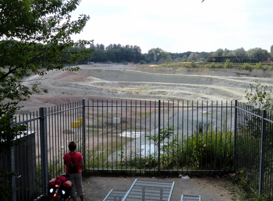 Een paar kilometer voor het dorp Winterswijk bekijken we nog even de steengroeve, een enorm stenen gat in de bodem.