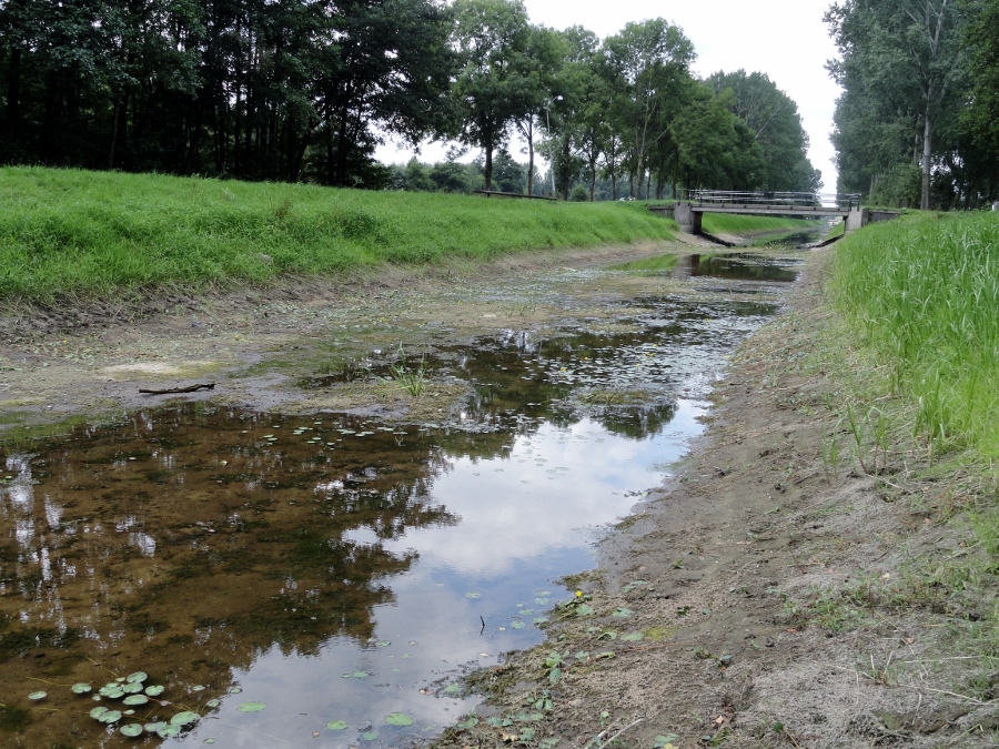 We volgen de Slingeroute en gaan over zandpaden afgewisseld met rustige geasfalteerde landwegen. Soms rijden we direct langs de Slinge en soms stroomt die uit ons zicht. De waterstand in deze beek is laag als gevolg van het uitblijven van langdurige regenbuien.