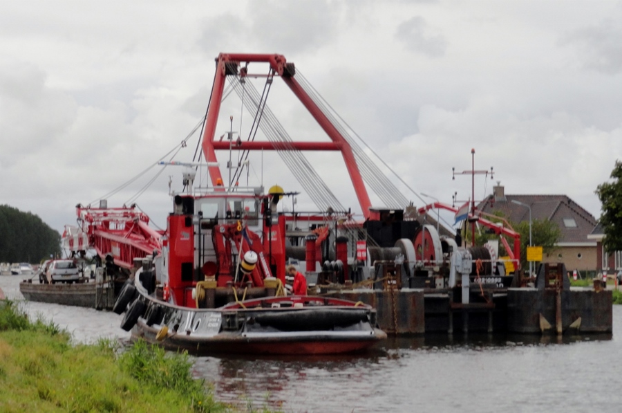 Wat doet dit materieel bij de Meerbrug in de Ringvaart bij Nieuwe Wetering? Nadert de bouw van de nieuwe brug zijn voltooiing?