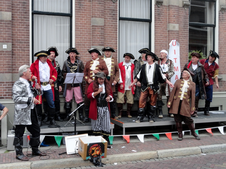 Hier wordt een Uitmarkt gehouden. Joke en ik waren vorige week bij de Amsterdamse Uitmarkt. Het is hier een wereld van verschil met de manifestatie op het Museumplein. Een piratenzanggroep treedt op, maar ook de plaatselijke judo-club en de gymnastiekvereniging geven acte de préséance.