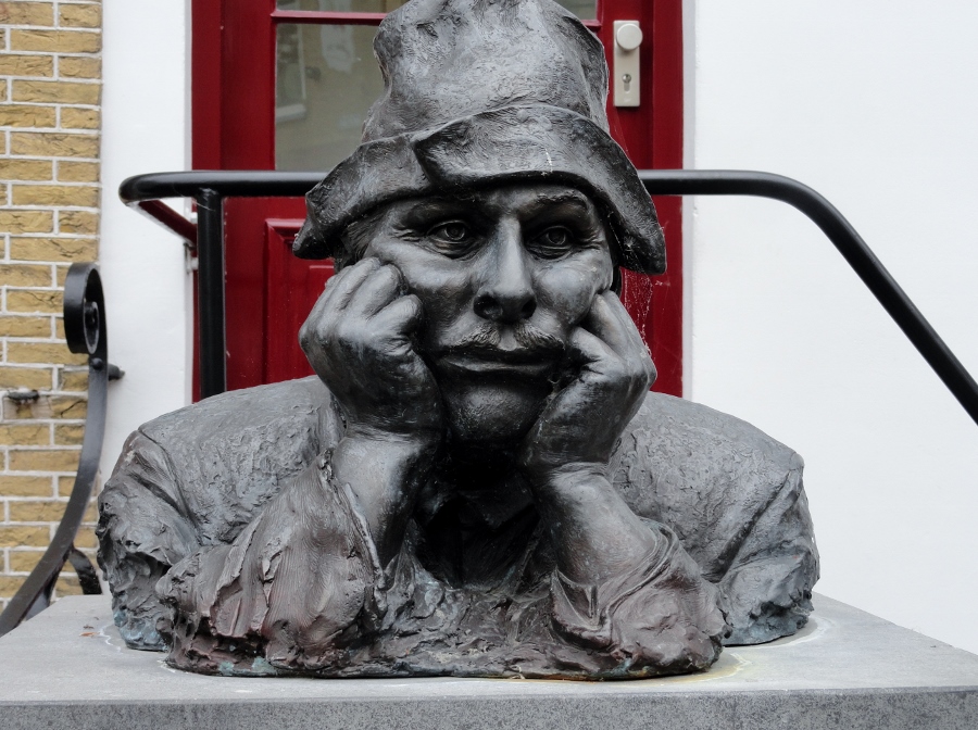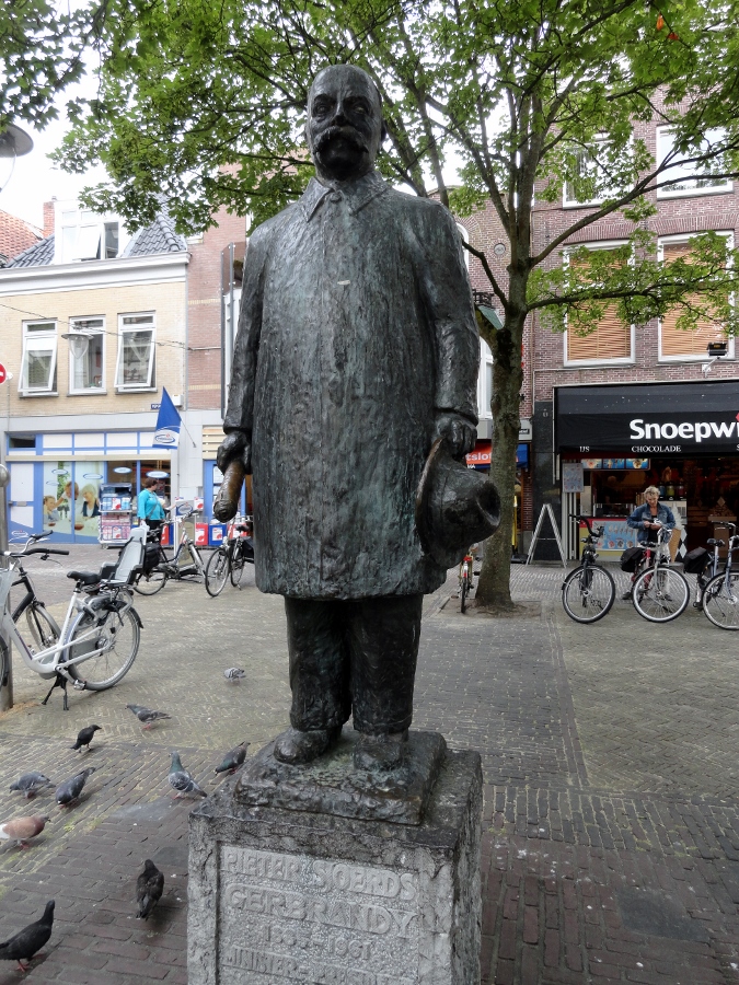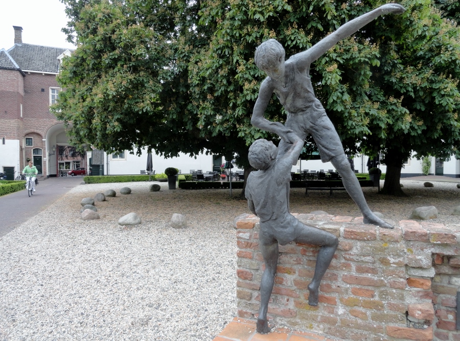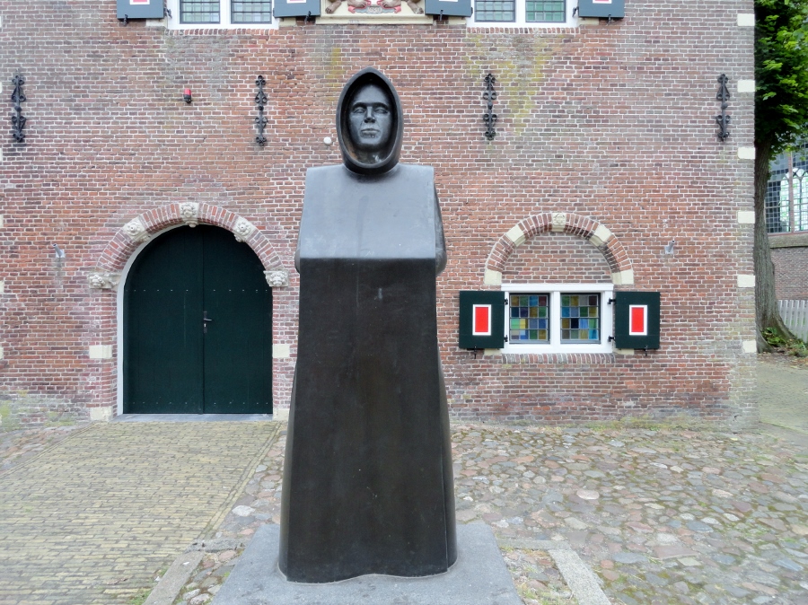 Vorige week maandag kwamen we op onze fietstocht ook door Oudewater. Nu zien we weer andere dingen, o.a. een borstbeeld van Swiebertje. Destijds werden de buitenopnames van de tv-serie over deze zwerver, gespeeld door Joop Doderer, in dit stadje gemaakt.