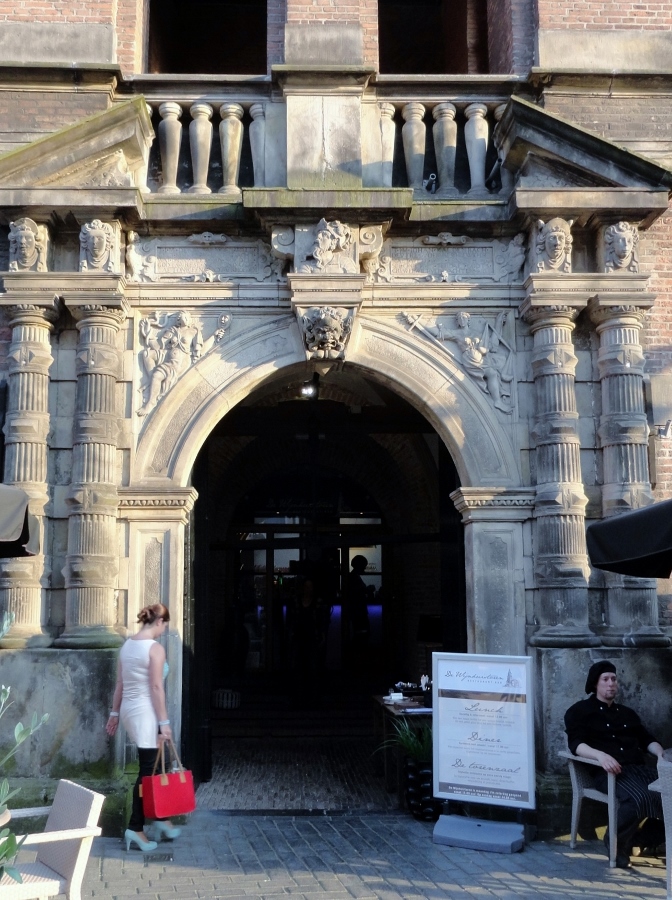 De auto’s staan bij de kerk in het oude centrum van Zwammerdam. Langs de Rijn volgen we 30 km de Limesroute en gaan door Bodegraven en Woerden. Bij Kasteel Woerden hebben we een gesprek met een medewerker van een zorginstelling die daar haar kantoor heeft. Een paar decennia geleden is het kasteel, gebouwd tussen 1407 en 1515 door Jan van Beieren, voor enkele miljoenen gerestaureerd.